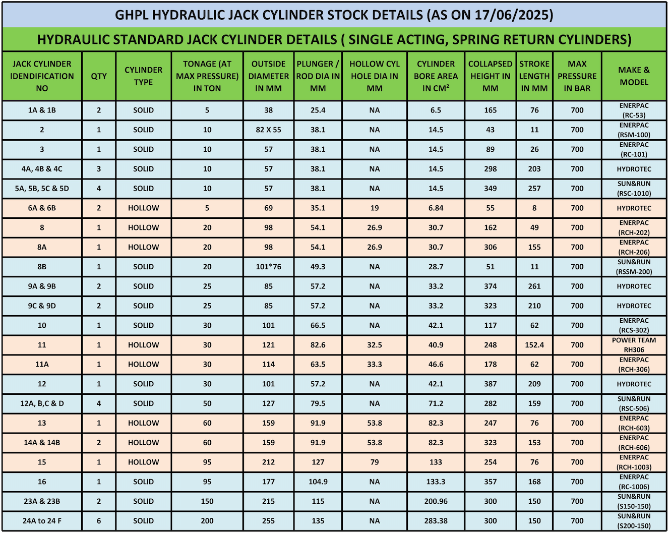 RENTAL OF HYDRAULIC EQUIPMENTS